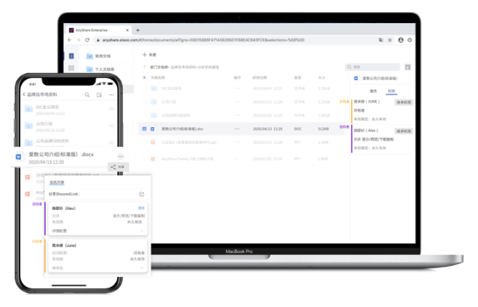业务员通过 SharedLink 开启匿名共享,经过领导审核确认通过后,共享生效。共享出去的文档受到安全策略和访问权限的管控。