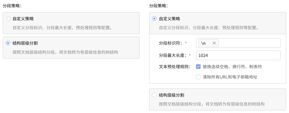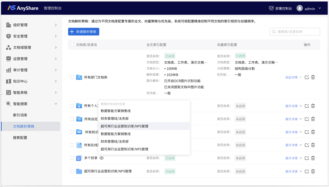 解析能力升级,知识助手技能上新,国产化同步盘重磅发布! 【内容解析能力】一、自定义解析策略,检索更精准支持超级管理员/系统管理员,在管理控制台中,根据文档特点及查询需求,自定义文档分段解析策略(含全文解析索引、切片向量解析),助力RAG大模型精准处理检索数据,实现解析策略与业务场景精准匹配。