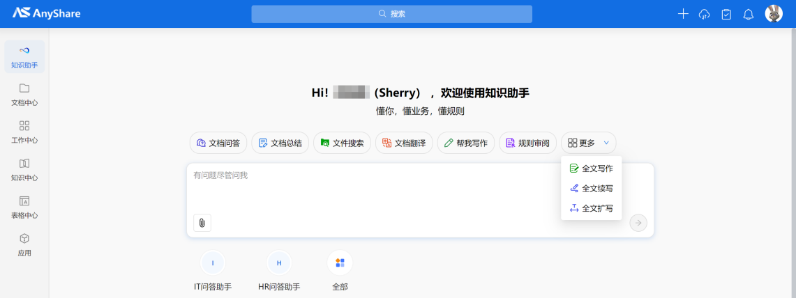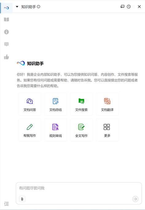 ![]() 四、文档中心/知识中心侧边栏统一支持知识助手:场景深度融合,提升可用性。