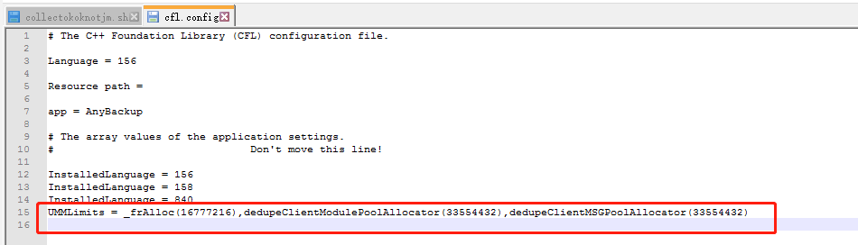 方案一,调整 AnyBackup 客户端 cfl.config 文件,限制 AnyBackup 程序的内存资源占用。