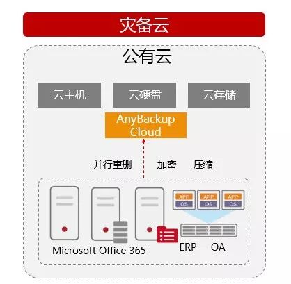 用户的业务系统部署在云上,且数据也存放在云端,通过在公有云上部署AnyBackup Cloud,即可为用户提供基于公有云的企业级数据保护即服务。