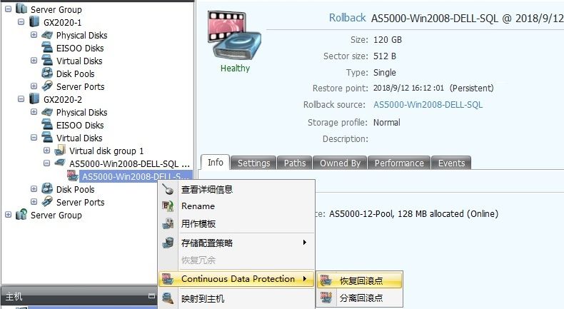 (2)支持瞬间建立任意时间点的Roll Back Volume(回滚卷),简化恢复作业,保障数据恢复效率。