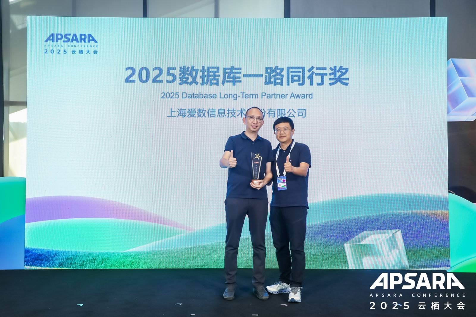 9月24日-9月26日,以“云智一体·碳硅共生”为主题的 2025 云栖大会在杭州云栖小镇国际会展中心举办。9月25日下午,爱数作为阿里云的生态创新伙伴受邀参加「繁花共绽」阿里云产品生态伙伴共创会,并凭借在产品协同创新、方案联合落地及生态价值共创方面的突出表现,荣获 “2025数据库一路同行奖”。